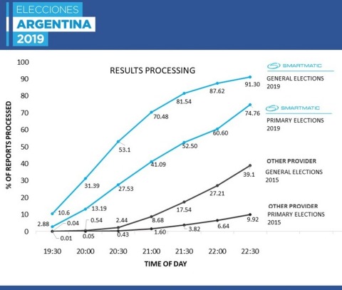 기술 기업 스마트매틱(Smartmatic)과의 제휴로 구현된 새로운 시스템 덕분에 아르헨티나 대통령 선거의 개표결과가 전례 없는 빠른 속도로 처리됐다.