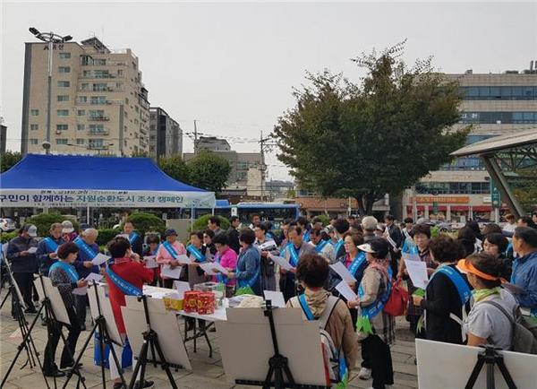 은평구(김미경 구청장)는 지난 10.23.(수) 11시부터 오후 4시까지 자원순환도시 은평추진단원들이 역촌평화공원과 연신내물빛공원 2곳에서 대대적인 홍보캠페인을 개최했다고 밝혔다.