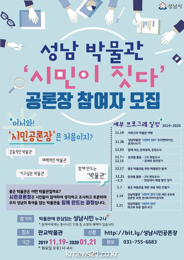성남시는 이번 공론장 개최를 통해 “시민과 함께 만드는 박물관”을 세우게 될 것으로 기대했다.