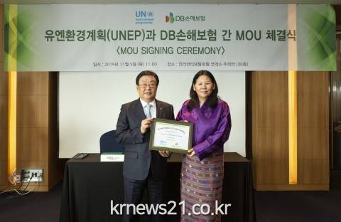DB손해보험(대표이사 사장 김정남)은 5일 ‘오염 없는 지구 : 지속가능·녹색성장’의 다양한 실천 방안을 모색하고 추진하기 위해 유엔환경계획(United Nations Environment Program : 이하UNEP)과의 업무협약(MOU)을 체결했다.