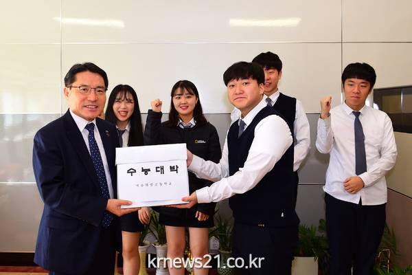 ▲ 권오봉 여수시장이 수능 8여일 앞둔 지난 6일 화양고를 방문해 수험생과 교사를 격려했다. 권 시장은 “남은 기간 잘 마무리하고 정리하는 시간으로 보내기 바란다”며 “후배들 뿐 아니라 여수의 선도 학교로 좋은 본보기가 될 수 있도록 끝까지 최선을 다해주기 바란다”고 말했다.