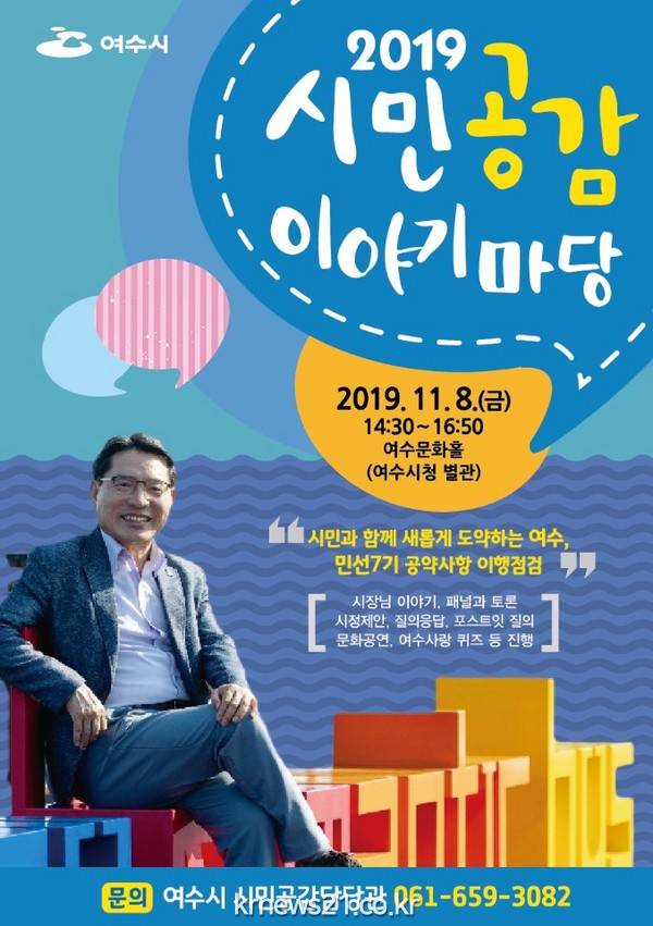 여수시(시장 권오봉)는 오는 8일 오후 2시30분부터 여수문화홀에서 2019 시민공감 이야기마당을 개최한다고 밝혔다.