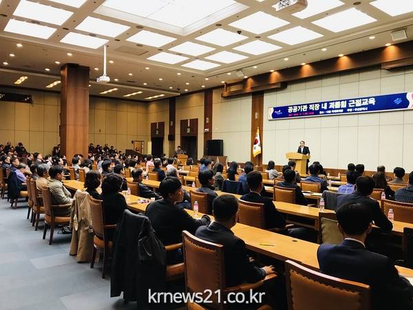 부산시(시장 오거돈)는 최근 잇따라 발생한 공공기관 직장 내 괴롭힘, 성희롱, 갑질 등으로 공공기관에 대한 시민의 신뢰도가 떨어지고 있어 이에 대한 재발 방지 및 예방을 위해 오늘(7일) 오후 2시 시청 12층 국제회의장에서 25개 공공기관 팀장급 이상 간부 전원을 대상으로 직장 내 괴롭힘 근절 통합 교육을 했다고 밝혔다.