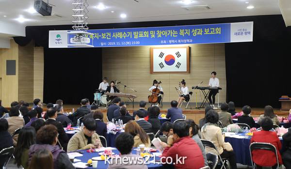 평택시(시장 정장선)는 지난 12일 시청 대회의실에서 읍면동 지역사회보장협의체 위원, 사회복지시설종사자, 공무원 등 150여 명이 참석한 가운데 복지 사각지대 제로화로 시민이 안심하고 살 수 있는 도시를 위한 ‘2019 복지- 보건사례수기 발표회 및 찾아가는 복지 성과 보고회’를 개최했다.