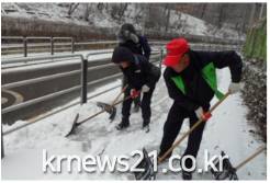 이에 앞서 구는 제설작업을 위해 제설차, 살포기 등 제설장비 8종 64대에 대한 사전점검을 실시하고 염화칼슘, 소금, 친환경인증 제설제 등 제설자재 1,300여 톤을 사전 확보했다. 또한 주‧보조간선도로 18개 노선(67.85㎞)와 고갯길, 보도육교, 사거리 등 제설 취약지점에 제설함 92개, 염화칼슘 보관의 집 152개를 설치했다.
