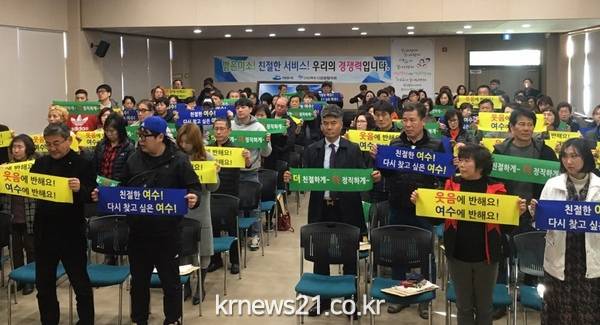여수시 일반음식점 영업자 150명이 지속가능 관광을 위해 친절마인드 실천을 결의했다.