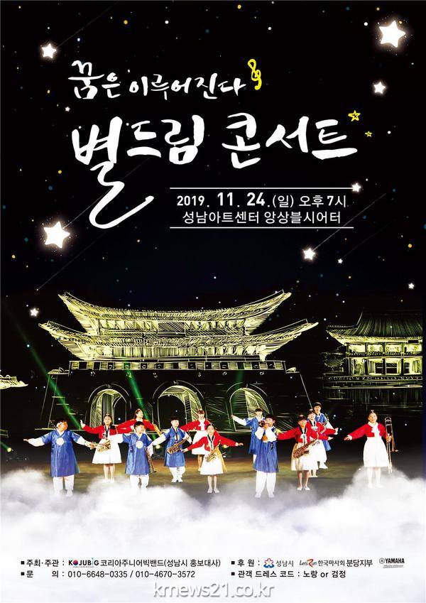 성남시(시장 은수미) 홍보대사로 활동하고 있는 코리아 주니어 빅밴드가 24일 오후 7시 분당구 이매동 성남아트센터 앙상블시어터에서 ‘꿈은 이루어진다! 별 드림 콘서트’를 개최한다고 밝혔다.