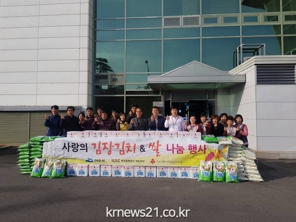 지난 21일 한국공항공사 여수지사(지사장 함영주)가 여수시 소라면사무소에 백미 10kg 45포와 김치 5kg 45박스를 후원했다.