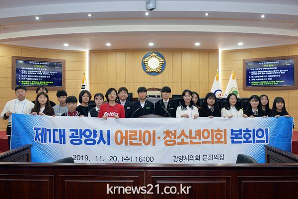 광양시와 광양시의회는 ‘제1대 어린이‧청소년의회 본회의’를 지난 20일(수) 시의회 본회의장