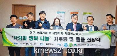 이혜련 육영학사 보육원장은 “지역사회 내 소외된 아동을 위해 나눔에 앞장서 준 대구시, 대구테크노파크, 스타기업 임직원분들에게 진심으로 감사드린다”며 “전달받은 기부금과 기업제품들은 아이들이 어려움 없이 학교생활을 할 수 있도록 소중하게 사용하겠다”고 말했다.