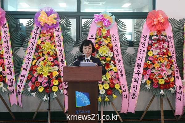의정부소방서(서장 홍장표)는 26일, 송산119안전센터에서 홍문종(우리공화당) 국회의원, 김민철 더불어민주당 의정부시(을) 지역위원장, 안지찬 의정부시의회 의장 등 소방공무원 및 의용소방대 80여명이 참석한 가운데 송산여성 의용소방대 발대식 행사를 가졌다고 밝혔다.