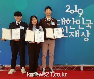 울산시에 따르면 교육부와 한국과학창의재단은 27일 세종문화회관에서 각 분야에서 탁월한 성취를 보여준 고교생과 대학생·청년 100명을 선정, 시상하는 ‘2019년 대한민국 인재상’ 시상식을 개최한다.