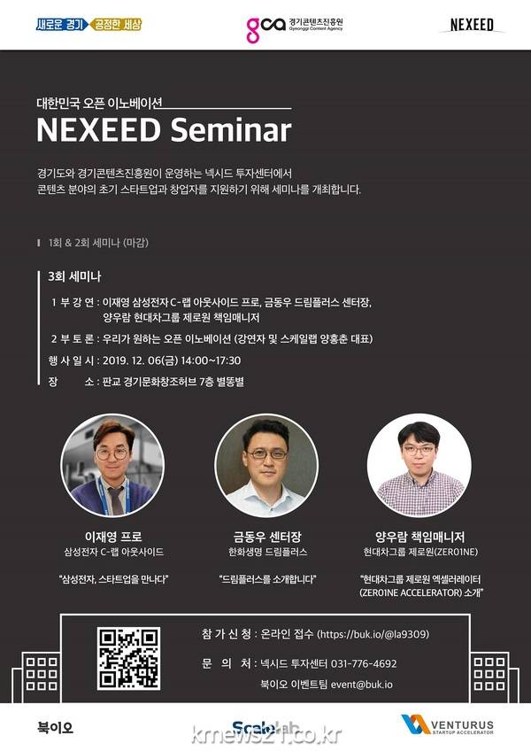 올해 세 번째 진행되는 ‘넥시드 세미나’는 판교 경기문화창조 허브 7층 별똥별에서 오는 12월 6일 진행된다.