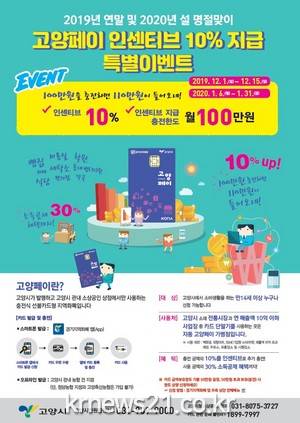 ▲ [사진=홍보포스터]고양시는 연말연시를 맞아 지역화폐 ‘고양페이’의 10% 인센티브 특별이벤트를 실시한다.