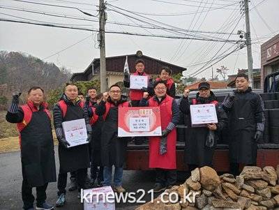 ▲ [사진제공 = 동두천시]동두천시 상패동에 지난 1일 새로운 후원천사가 나타났다. 후원천사는 천우회(회장 전태엽)로, 상패동 소외계층을 위해 연탄 1,500장과 라면 40박스를 후원 및 전달하였다.