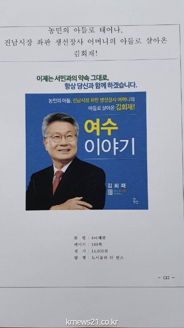 27년4개월 동안 대한민국 검사로서 정의와 사랑을 실천한 검사 재직시의 이야기와 “여수시민의 삶 그리고 새로운 꿈”을 만들기 위한 방법을 제시한 “김회재의 여수이야기”를 (주)더 한스에서 출간했다.