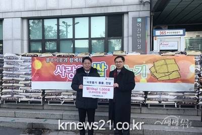 ▲ [사진제공 = 부천시]부천시는 지난 6일 순복음중동교회(목사 김경문)에서 쌀(10kg) 1,000포를 시에 기부했다고 9일 밝혔다. 순복음중동교회는 2007년부터 어려운 이웃을 위한 희망나눔으로 쌀 기부를 이어오고 있다. 기부받은 쌀은 관내 사회복지시설 및 단체, 저소득 가정에 배부할 예정이다.