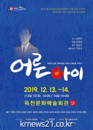 ▲ [사진=홍보포스터]옥천문화예술회관에서 오는 13일과 14일 충북대표문화공연 제작 지원사업 선정작 연극 '어른아이'를 공연한다.