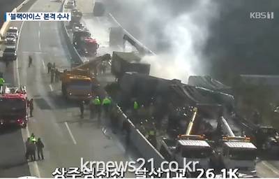 ▲ [사진출처 = KBS뉴스 캡처]지난 14일 발생한 상주-영천고속도로 '블랙 아이스' 다중 추돌사고와 관련해 정부가 결빙 취약구간에 대한 전면 재조사에 나서기로 했다. 블랙 아이스는 녹았던 눈이나 내린 비가 얼며 얇은 빙판으로 변하는 현상으로 '도로 위 암살자'로 불린다.