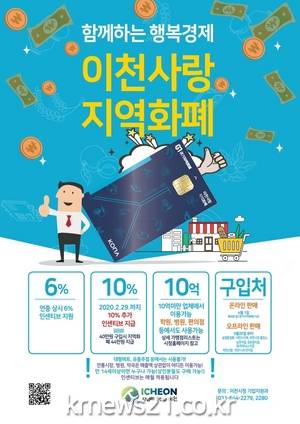 선불식 충전카드인 이천사랑 지역화폐는 휴대폰 앱 ‘경기지역화폐’에서 발급하거나 농협중앙회, 이천신협에서 구입가능하고, 연간매출액 10억 미만인 소상공인 업소(편의점, 프랜차이즈 포함)에서 사용가능하며 전통시장과 병원, 약국은 매출액에 상관없이 이용할 수 있다.(대형마트,백화점,대규모점포에서는 사용불가)