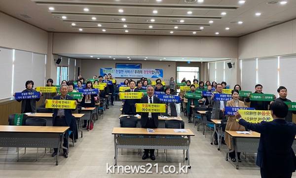 (사)여수시관광협의회 주관으로 마련된 이번 행사는 음식·숙박·관광업체 등 관광업 종사자 70여 명이 참여한 가운데, 친절교육과 결의대회로 진행했다.