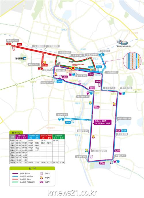 한편, 대구국제마라톤대회는 2001년 마스터즈가 참가하는 하프대회를 시작으로 2008년에는 엘리트 부문으로 확대했고, 2009년 대회부터 국제육상경기연맹(IAAF)공인 국제마라톤대회로 치러지고 있다.