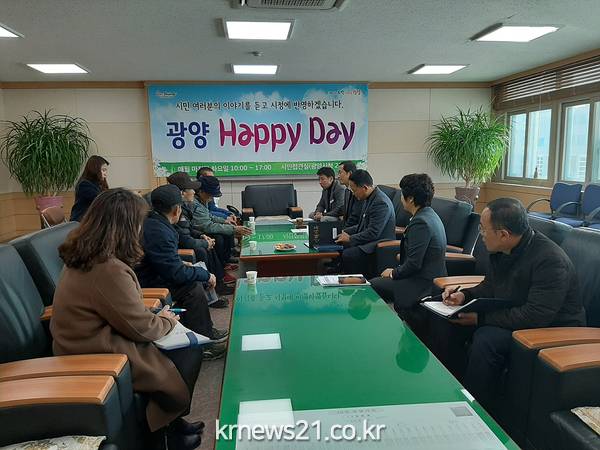 ‘광양 해피데이’는 시민 누구나 시장(부시장, 국장)을 만나 시정에 대한 의견들을 자유롭게