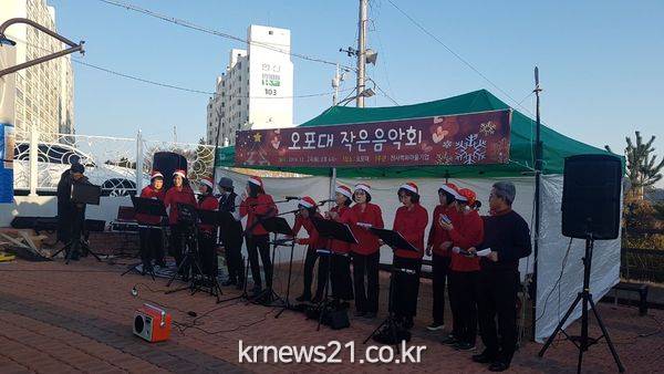 이날 고소동 주민 등 100여 명은 초청가수 공연, 크리스마스캐럴 연주, 판소리 등 다양한 재능기부 공연을 즐겼다.