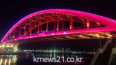 속초시가 지난 9월 설악대교 도장 보수공사에 이어, 도심지 새로운 관광명소 조성을 위해 총 10억원을 투자하여 추진한 설악대교 경관조명 설치공사를 12월 완료했다.