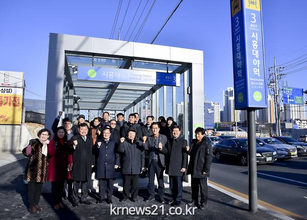 시흥 대야역의 3번 출입구 개통을 축하하기 위한 기념행사를 전날인 2019년