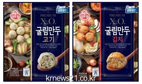 ▲  [이미지제공 = 오뚜기]오뚜기(대표이사 이강훈)의 ‘프리미엄 X.O. 만두’가 ‘굴림만두’ 2종 출시로 얇은 피 만두 시장 공략에 나섰다.