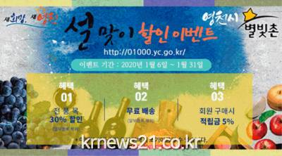▲ [이미지제공 = 영천시]영천시(시장 최기문)는 2020년 설맞이 농·특산물 특별 할인행사를 온라인 쇼핑몰인 ‘별빛촌장터’에서 실시한다.