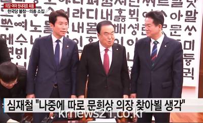 문 의장은 한국당이 회동에 무단 불참한 데 대해 "오랄 땐 안 오고, 안 왔으면 할 때는 와가지고 문을 두드리고 부수려고 한다"며 "청개구리 심보"라며 우회적으로 비판했다.