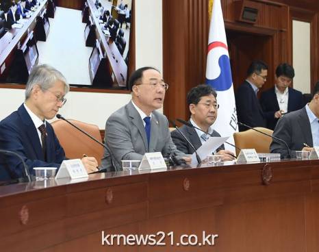 홍 부총리는 미국과 이란 간 긴장 고조와 관련해선 "중동지역 정정불안이 새로운 리스크 요인으로 부각되고 있다"며 "우리는 견고한 대외건전성 등에 비추어 과도한 불안감을 가질 필요는 없겠으나 엄중한 경계로 냉철하게 상황을 직시해 적기 대응해 나가겠다"고 말했다.