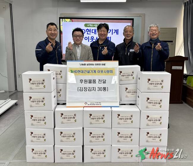 화정종합사회복지관[뉴스21일간=임정훈]HD현대건설기계 임직원 봉사단체 ‘이웃사랑회’(회장 이창식)는 11월 24일 사회복지법인 진각복지재단 울산화정종합사회복지관(관장 김용석)에 김장김치 30통을 전달하며 따뜻한 나눔을 실천했다. 이번 후원은 연말을 맞아 지역사회에 온정을 전하고 나눔의 가치를 확산하기 위해 마련되었으며, ...