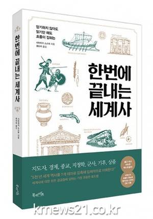 ‘한번에 끝내는 세계사’는 세계사를 ‘지도자, 경제, 종교, 지정학, 군사, 기후, 상품’이라는 7개 테마로 한정해, 시대순으로 읽어 내려간 책이다. 저자는 이 방식이 테마별로 고대부터 현대까지 가장 효율적으로 통독할 수 있는 장점이 있고, 하나의 테마가 마무리될 때마다 세계사 전반을 훑었다는 성취감을 얻도록 한다고 강조한다.