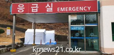 ▲ [사진제공 = 영덕군]신종코로나바이러스 감염증 확진환자 국내유입으로 위기단계가 관심에서 주의로 격상되자 영덕군은 영덕아산병원에 음압텐트를 설치하여 선별진료소로 지정 운영한다고 밝혔다.