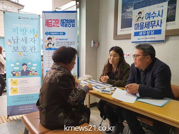 ▲ 지난 29일 여수시 납세자보호관이 율촌면사무소 ‘시민과의 열린 대화’ 행사장을 찾아가 시민들에게 취득세, 재산세 등 세무 상담을 진행해서 눈길을 끌었다.
