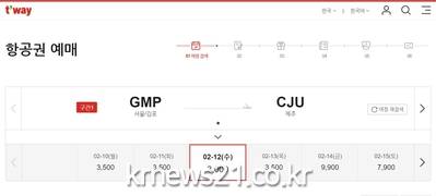 같은 기간 제주-김포 구간 편도 항공 요금도 비슷하다. 즉, 2만 원대로 제주 왕복 항공권을 살 수 있는 셈이다.