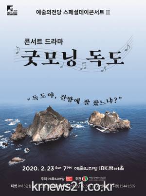 ▲ [사진=홍보포스터]세상에 없던 새로운 독도 이야기가 콘서트로 태어난다. 예술의전당(사장 유인택)은 새롭게 시작한 스페셜데이콘서트 시리즈의 두 번째 음악회로 콘서트 드라마 '굿모닝 독도'를 2월 23일(일) 오후 7시 IBK챔버홀에서 개최한다고 밝혔다.