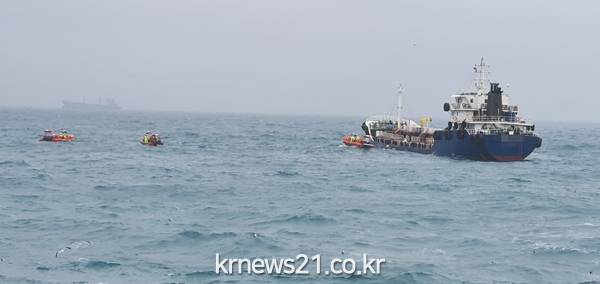 경비함정 경찰관과 해경구조대 16명이 직접 사고선박에 승선하여 오늘 오후 16시 45분 경 화재는 완전히 진압되었다.