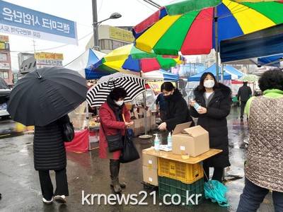 시는 앞서 소비자의 안전한 장터 방문을 위한 예방수칙 홍보와 함께 관내 전통시장상인회와 양곡5일장에 손소독제와 마스크를 배부한 바 있으며, 14일 하성5일장까지 손소독제 총 600개와 마스크 총 1,600개를 배부할 예정이다.