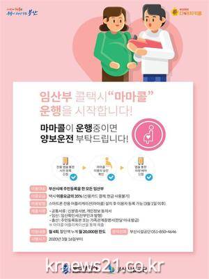 부산시(시장 오거돈)는 출산율 저하에 대응하고 임산부에게 병원 진료 등 이동편의를 제공하기 위해 임산부 콜택시(마마콜)를 3월 16일부터 운영한다고 밝혔다. 투입예산은 2020년 15억 2천만 원, 운행 대수는 총 4,200여 대다.