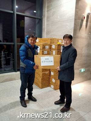 속초시가 지난달 30일 중국 훈춘시정부에 신종 코로나 바이러스 방역물품 지원 긴급지원 대책회의를 갖고 항공편으로 보낸 의료용 방역장비 60set(1천만원 상당)가 지난 11일 현지에 무사히 도착했다.