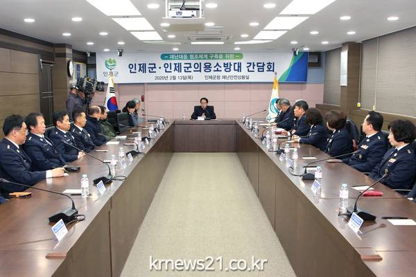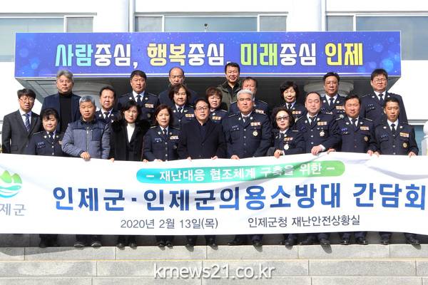 인제군은 13일 군청 재난안전상황실에서 최상기 인제군수 및 인제군의용소방대원 등 30여명이 참석한 가운데 재난대응 협조체계 구축을 위한 ‘인제군·인제군의용소방대 간담회’를 개최했다.