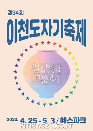 이천도자기축제는 2020 경기관광 대표축제로 선정된 지역사회 대표축제 중 하나로, ‘일/곱/빛/깔/보/물/찾/기’라는 주제로 오는 4월 25일부터 5월 3일까지 9일간 개최될 예정이다.