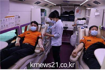 ▲ [사진제공 = 대전광역시]유성소방서는 18일 오전 10시 도룡동 청사에서 동절기 혈액수급 부족에 따른 헌혈에 참여했다.