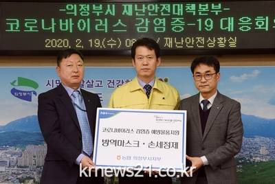 농협중앙회 의정부시지부는 2월 19일 코로나19(COVID-19)의 확산 방지를 위해 의정부시에 마스크와 손소독제를 전달했다.
