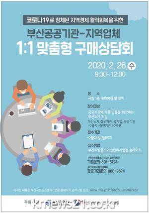 ▲ [사진=홍보포스터]부산시(시장 오거돈)와 부산지방중소벤처기업청(청장 김문환)은 2월 26일 오전 9시 30분 시청 1층 대회의실에서 부산혁신도시 이전 공공기관, 부산 소재 준정부기관·공기업, 부산시 산하 공공기관 등 40개 공공기관이 참여하는 「2020 부산 공공기관 지역제품 합동구매상담회」를 개최한다고 밝혔다.
