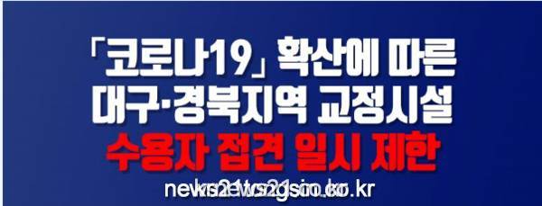 무부가 코로나19의 교정시설 유입 차단을 위해 대구·경북 지역 일부 교정시설 수용자 접견을 24일자로 잠정 제한한다.